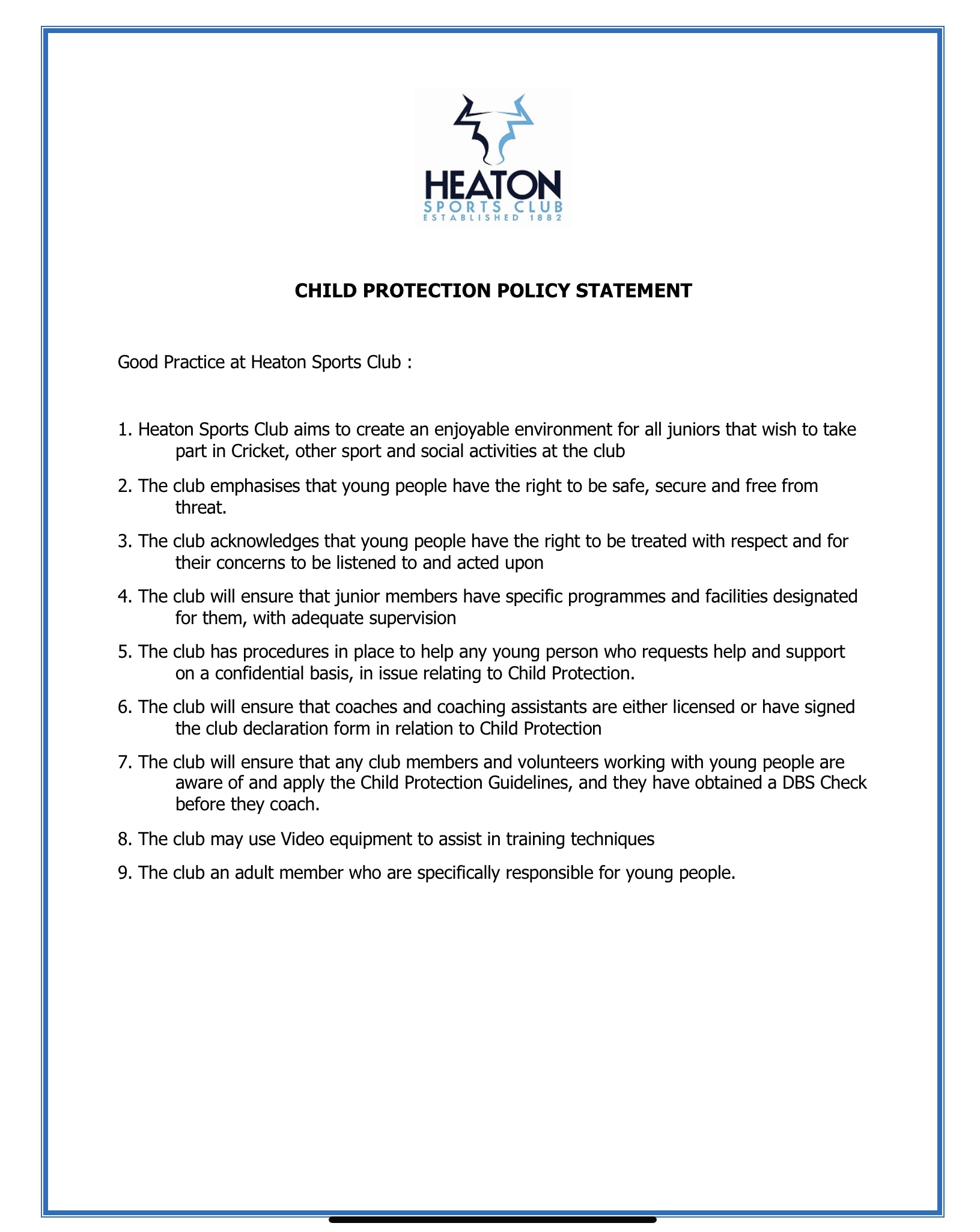 Our Clubs Child protection policy statement