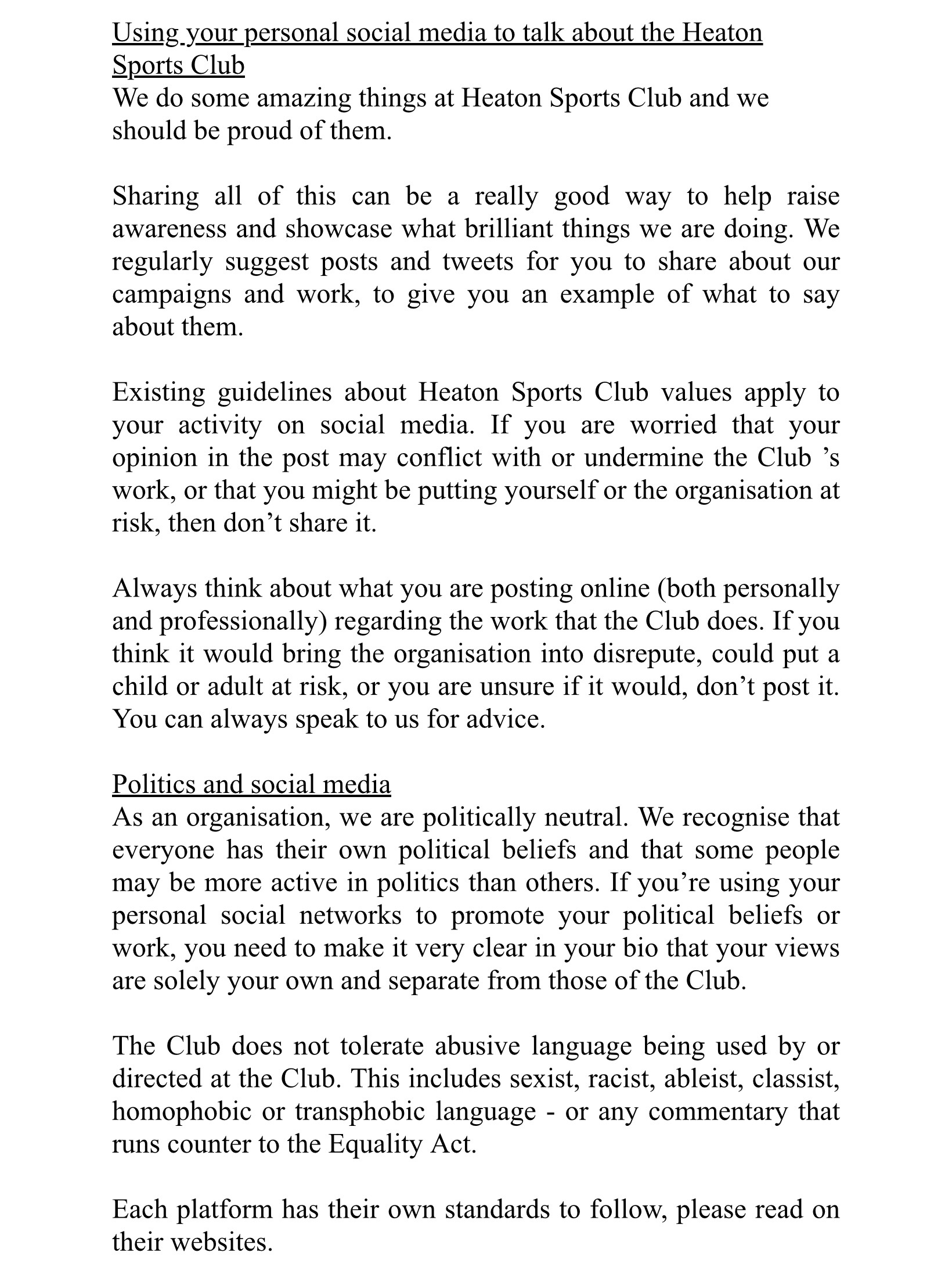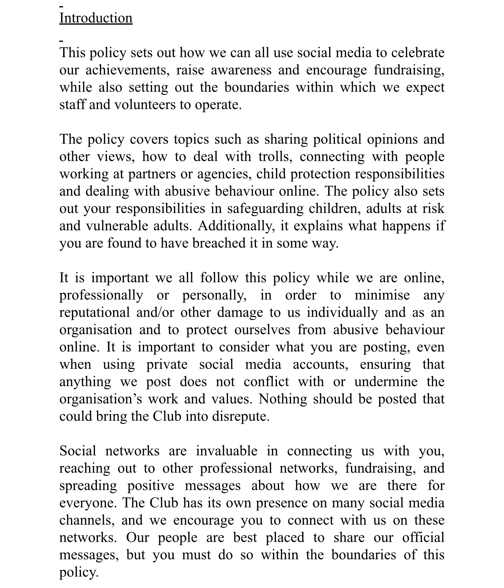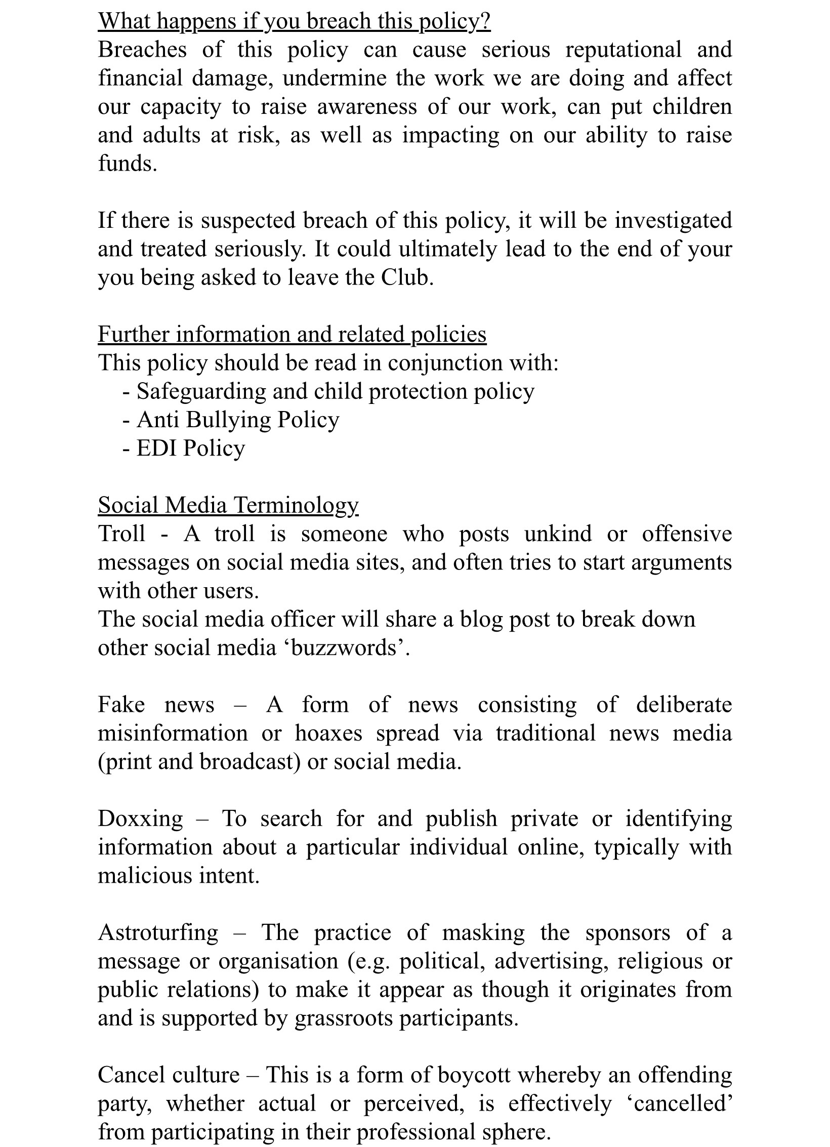 Club Social Media Policy