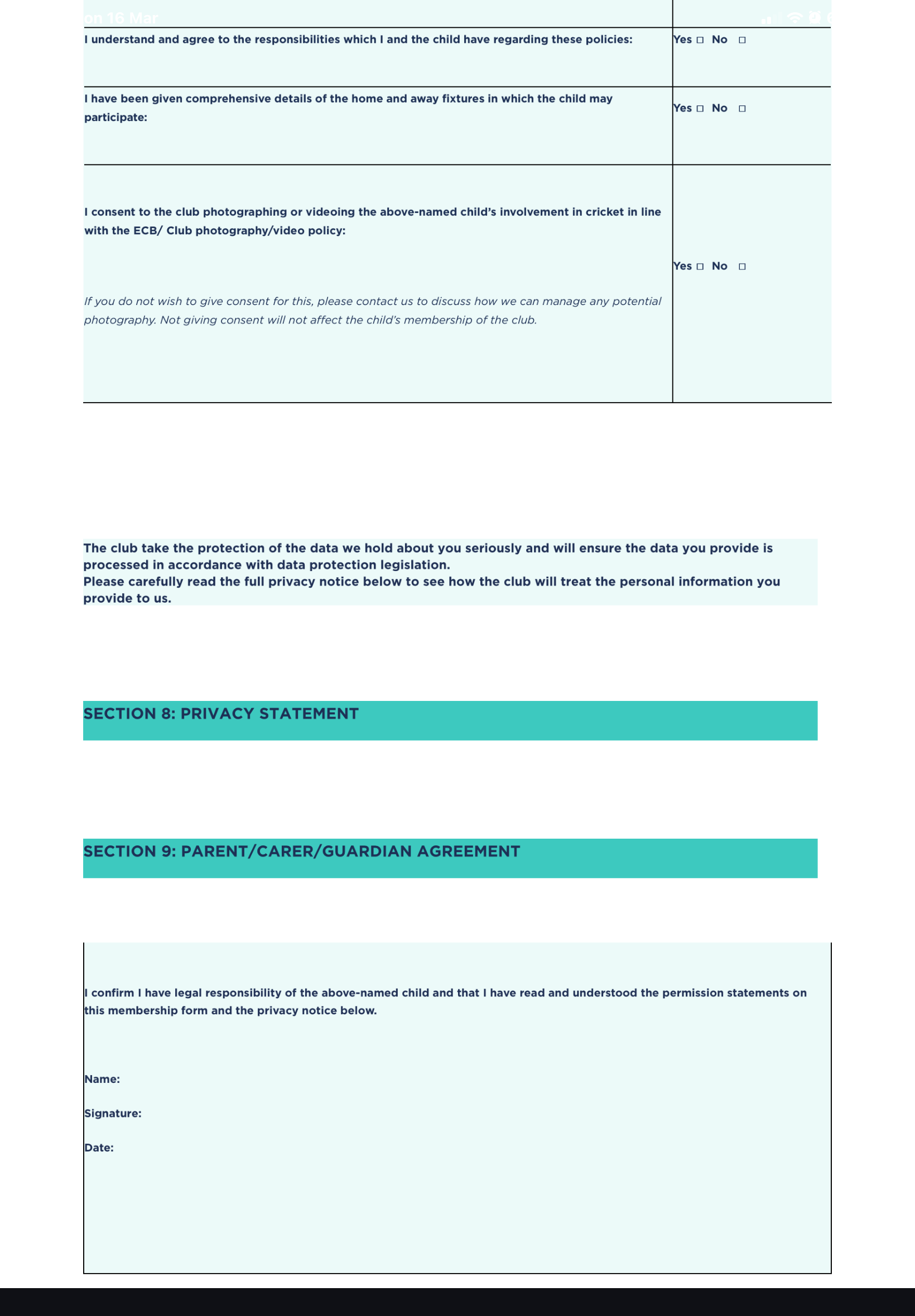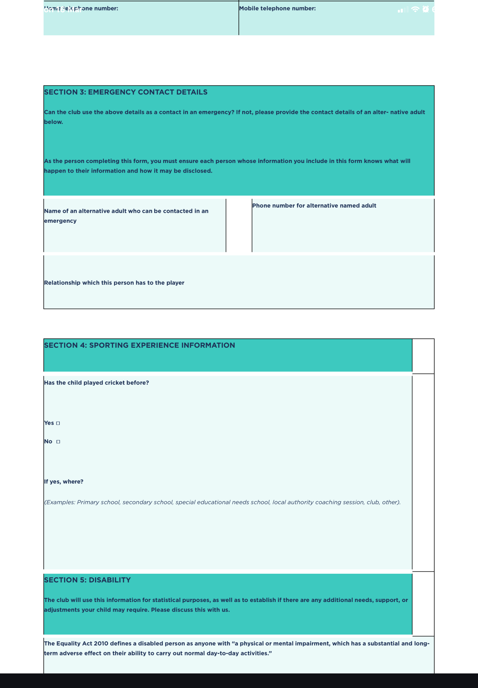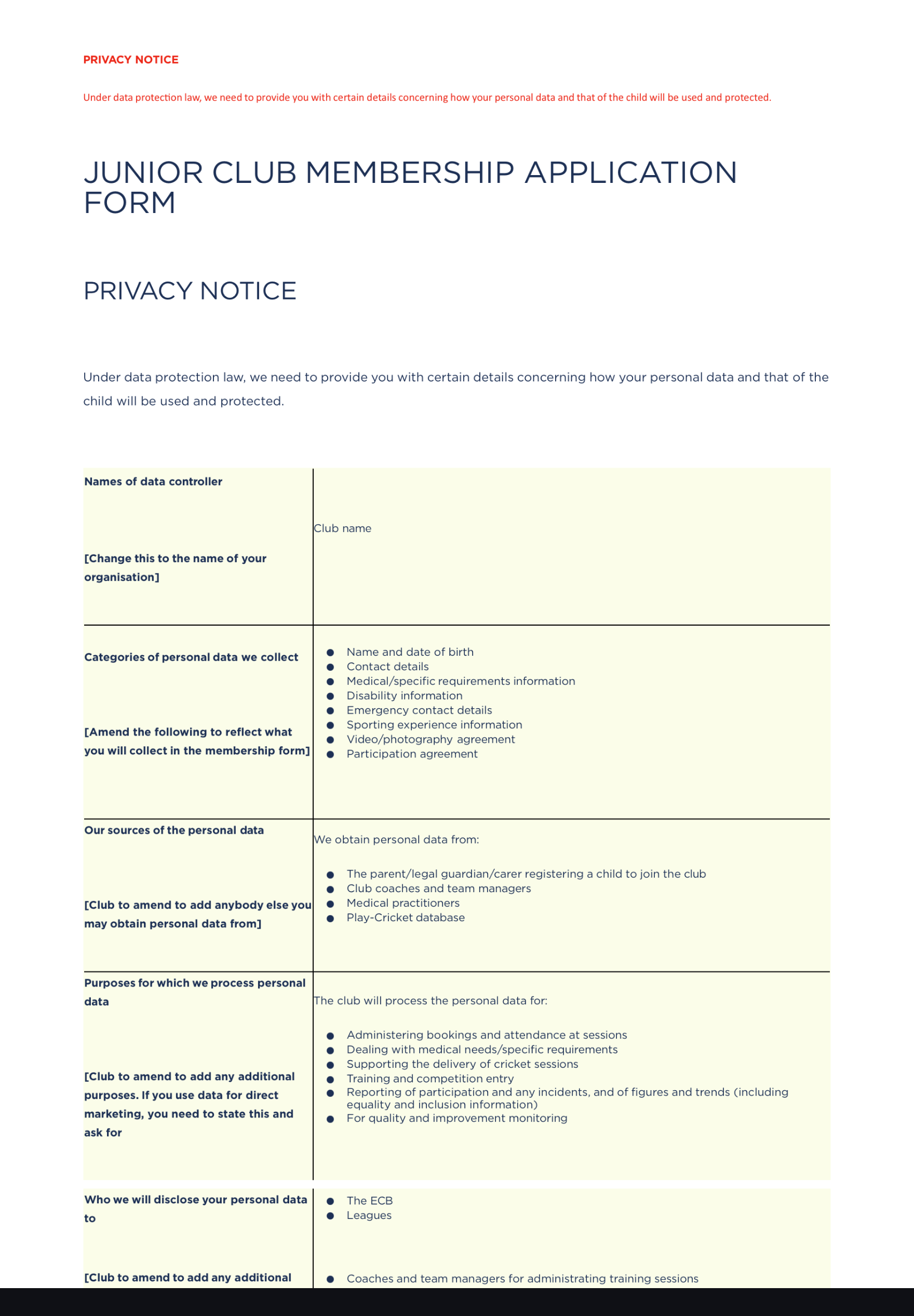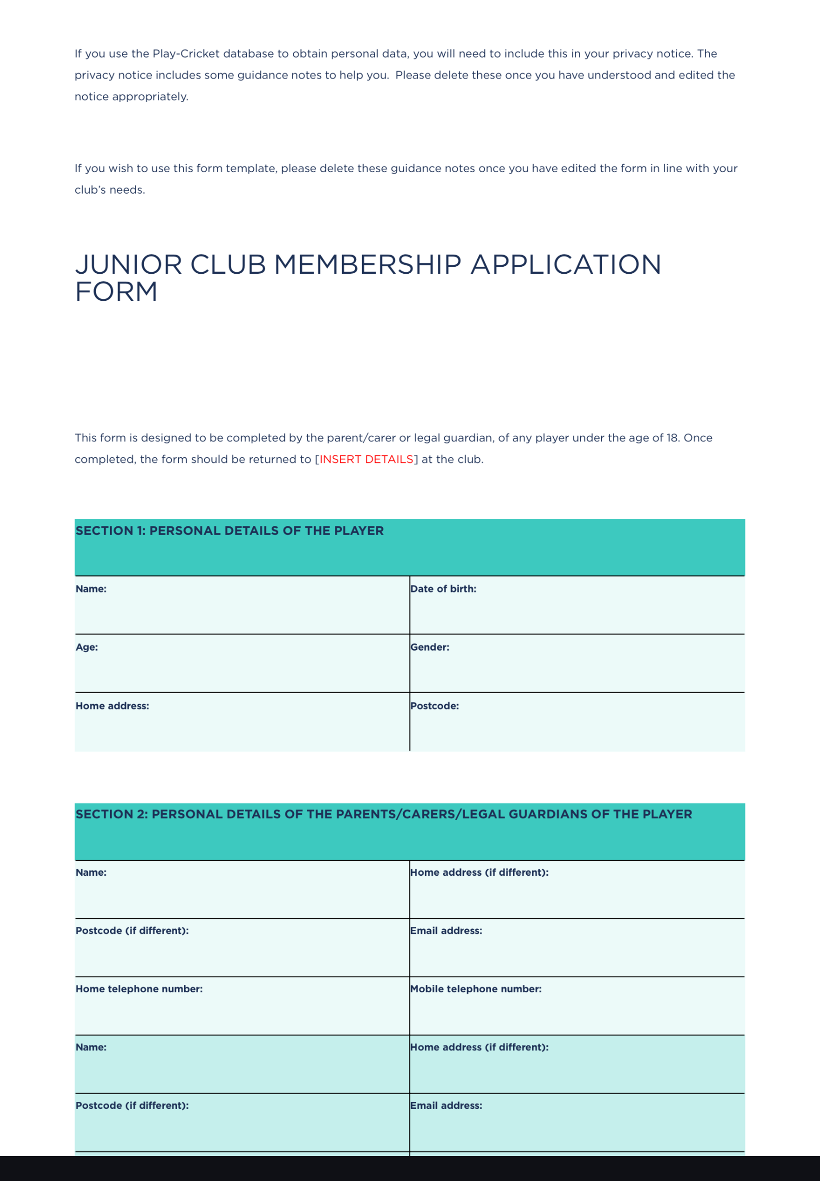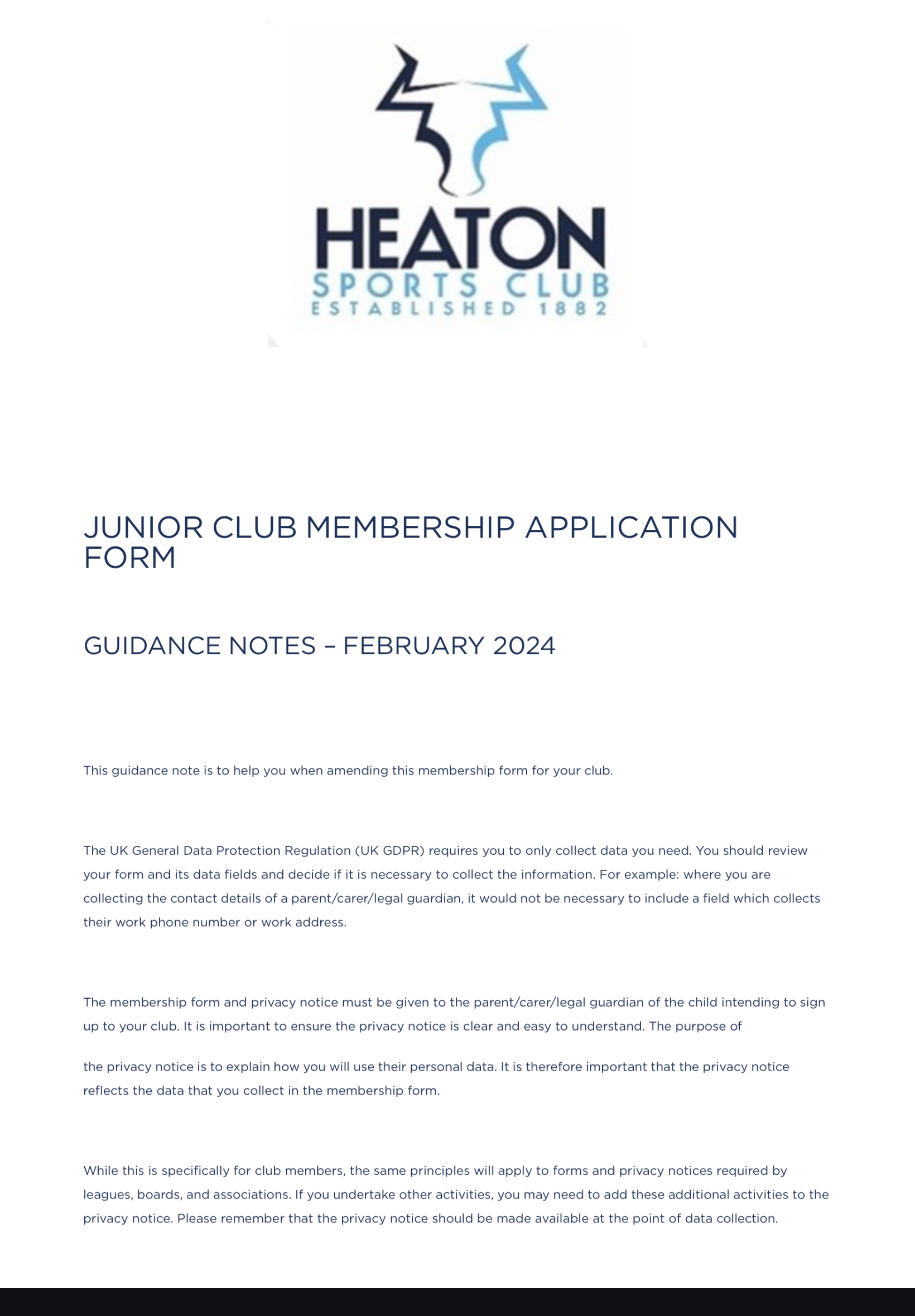 Junior Club Members Application Form