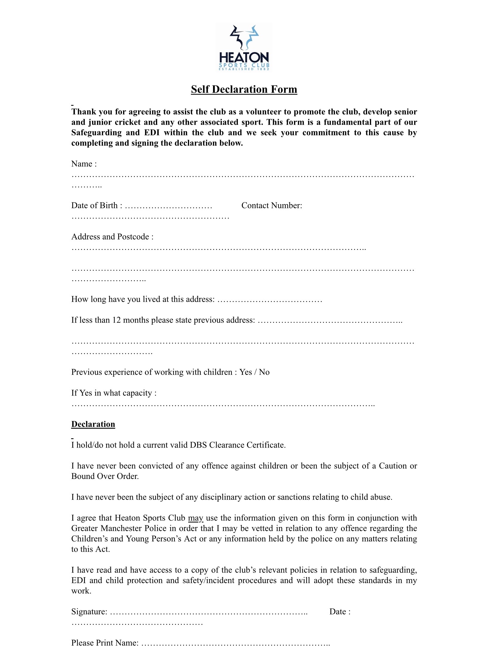 Volunteer Recruitment Policy Details of our Volunteer Recruitment Policy and Self Declaration Form 11 Feb 2026