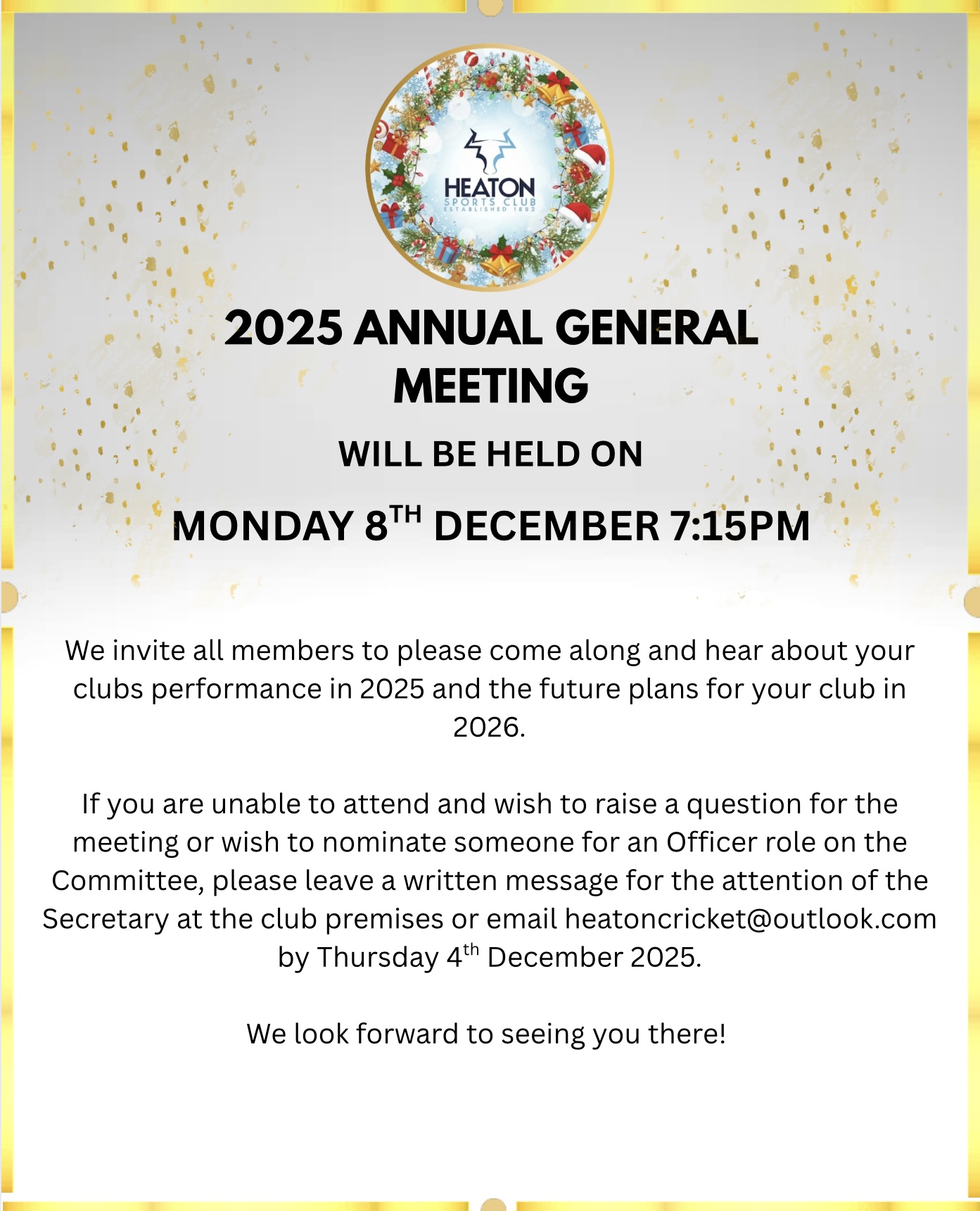 Don’t just be a member; be an owner. We need your energy and commitment to ensure Heaton Cricket Club continues to thrive! 🔵⚪️💫